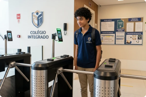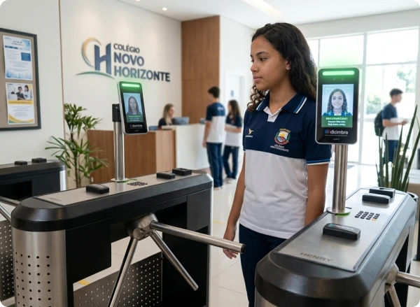 Catracas com reconhecimento facial e sistema integrado para Escolas que querem mais controle, mais confiança dos pais e mais destaque no mercado.